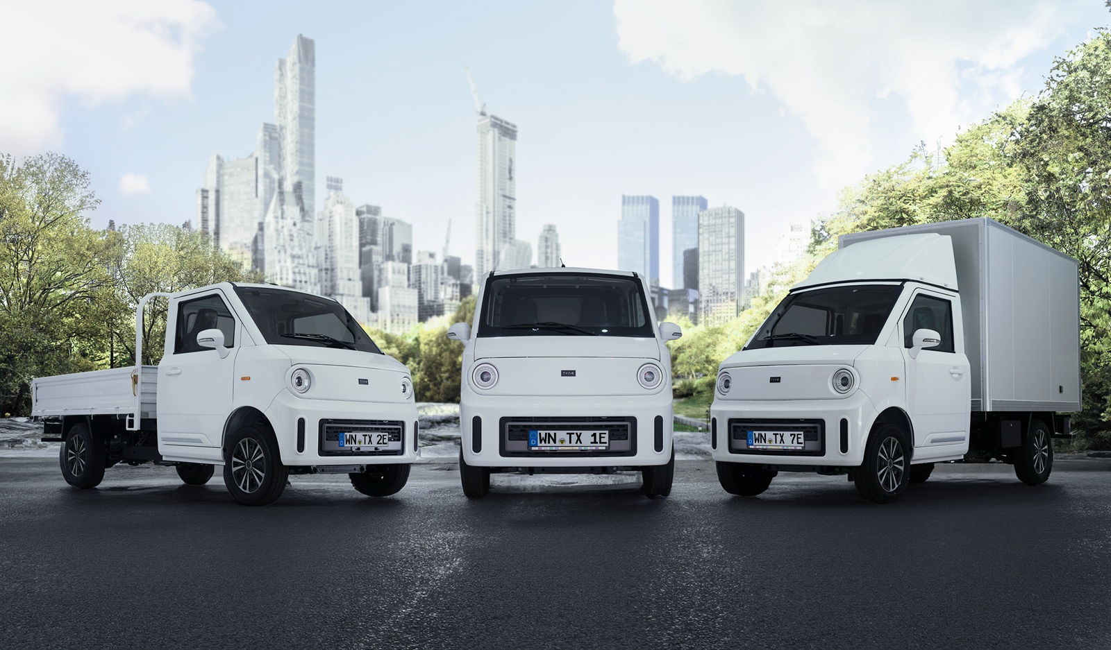 - TX1-e: Kompakt, ideal für Kurierdienste und Handwerksbetriebe, Zuladung bis 620 kg.